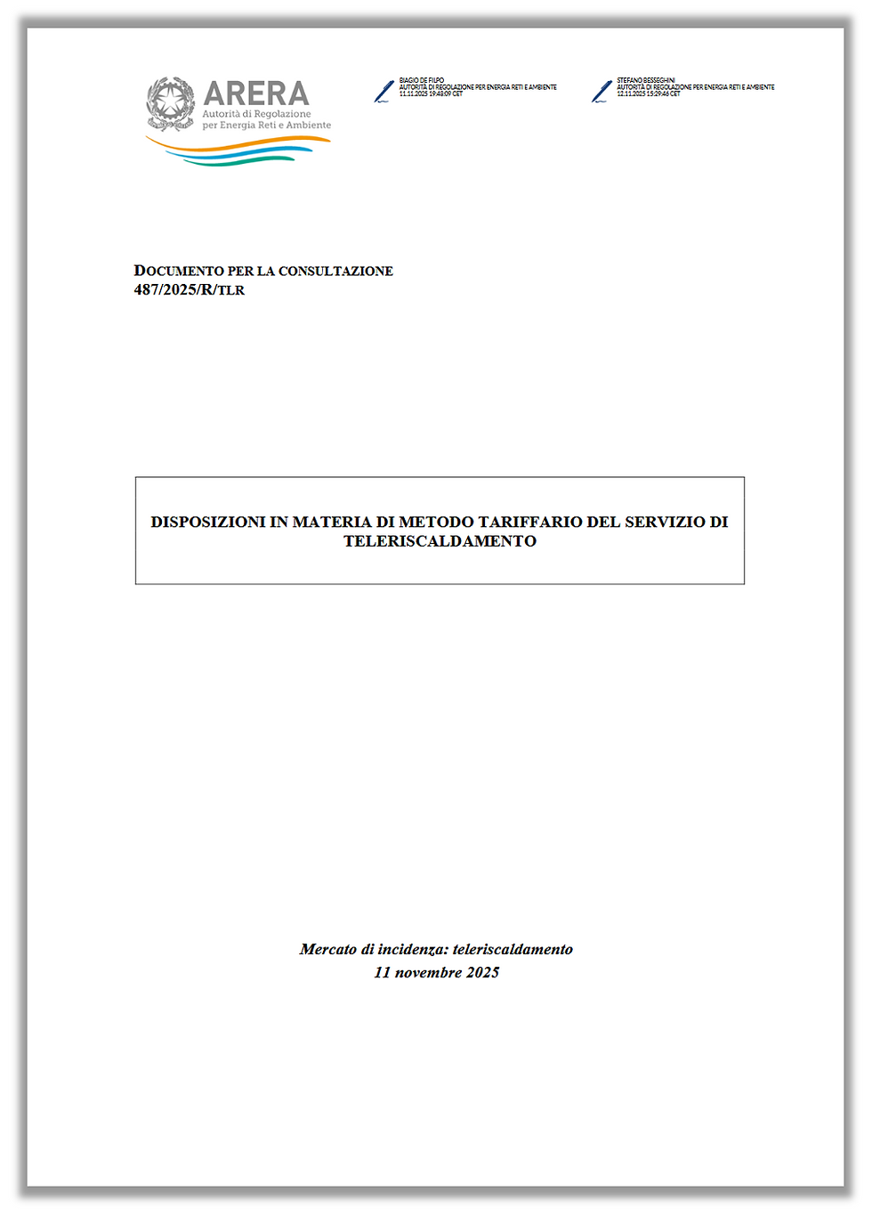 📢 ARERA pubblica il DCO n. 487/2025 sul nuovo Metodo Tariffario per il servizio di teleriscaldamento